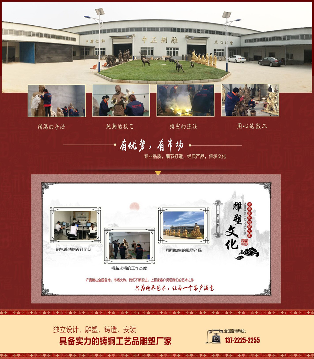 網(wǎng)站公告:響應(yīng)國家號召,打造綠色鑄銅雕塑環(huán)境!是專業(yè)的銅雕,人物銅雕,動物銅雕,城市銅雕,銅雕廠家。公司宗旨:市場永遠在變,誠信永遠不變。